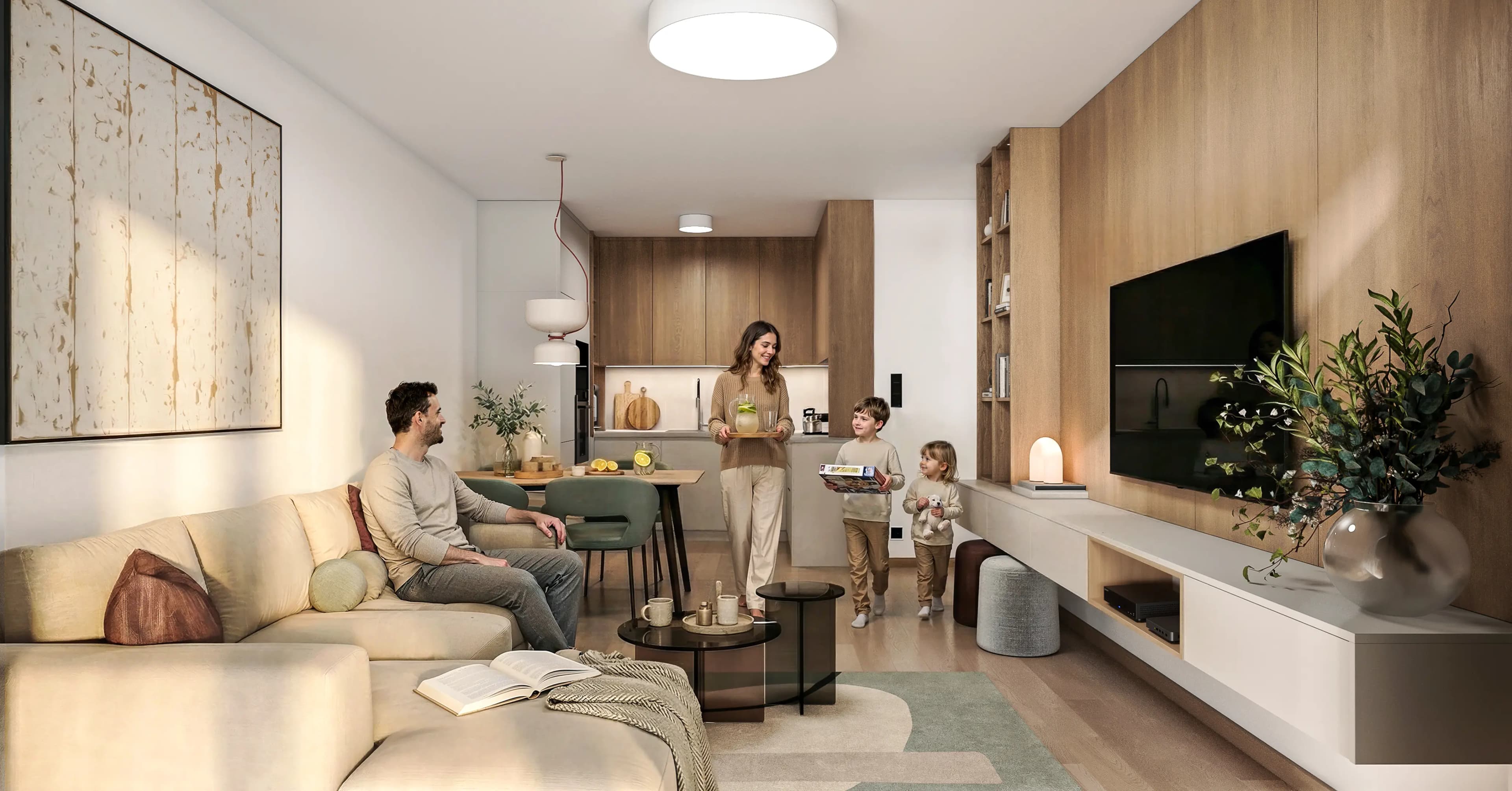Interiér však tvoríte vy. Vyberte si z nášho exkluzívneho katalógu štandardov to, čo vystihuje váš štýl – či už ide o dekory podláh, interiérové dvere alebo veľkoformátové obklady a sanitu v kúpeľni. Váš byt vám odovzdáme kompletne pripravený na nasťahovanie, presne podľa vašich predstáv.